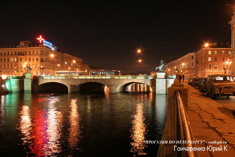 Аничков мост через Фонтанку расположен в створе Невского проспекта. Из малых мостов - это пожалуй, самый известный мост Петербурга. Хотя его нельзя назвать самым красивым, но скульптурная группа коней Клодта сделала мост одной из самых ярких