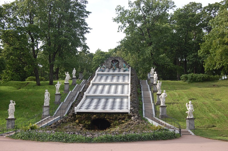 Фонтан Шахматная гора в Санкт-Петербурге занимает центральное место в восточной части Нижнего парка.