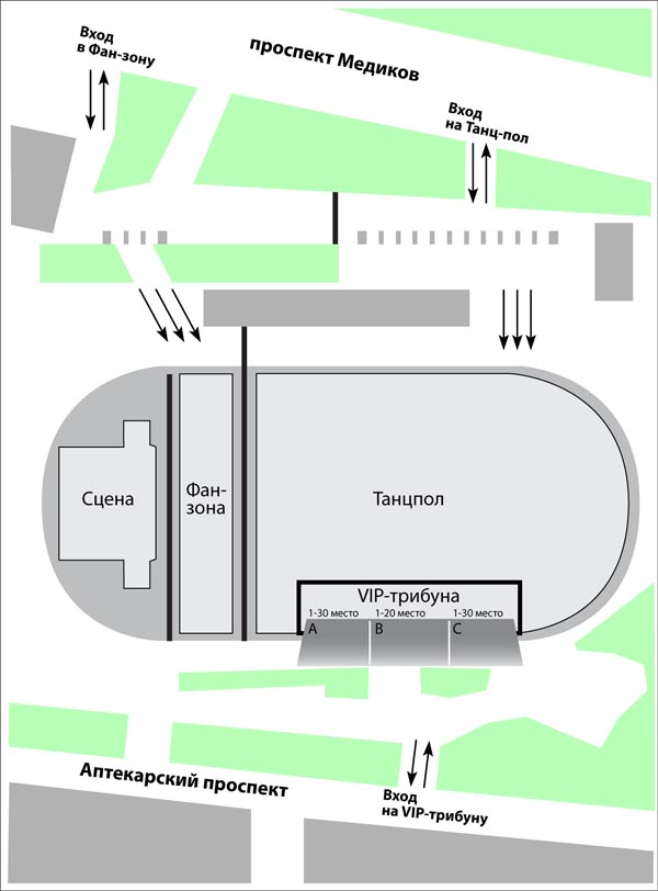Стадион «Телебашня» в Санкт-Петербурге находится на Аптекарском проспекте в Петроградском районе города. На нем устраиваются различные концерты, шоу – представления и развлекательные мероприятия под открытым небом. Недалеко находится станция метрополитена «Петроградская». Здесь же располагается